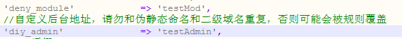 在config.php配置文件中,有两项参数配置:deny_module和diy_admin